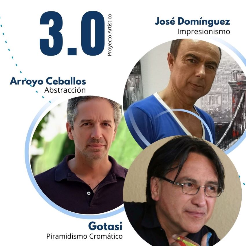La exposición 3.0 de los creadores Arroyo Ceballos, Gotasi y José Domínguez supone un encuentro de lo hispanohablante, con tres marcados estilos pictóricos como son la Abstracción, el Piramidismo Cromático y el Impresionismo. Tres referentes del arte contemporáneo que unen su obra provocando un diálogo entre diferentes lenguajes artísticos, siendo presentado el proyecto en diferentes ciudades de Estados Unidos.