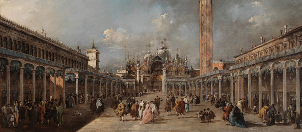 Junto a las pinturas de Guardi, adquiridas entre 1907 y 1921, se muestra un dibujo del mismo artista, incorporado en 2002, y un óleo de su hijo Giacomo. Las obras están fechadas entre 1765 y 1791 e ilustran lugares icónicos de Venecia, como el puente de Rialto o el Palacio Ducal, fiestas como la de la Ascensión, los alrededores de la ciudad y algunos caprichos, pertenecientes al final de su carrera.