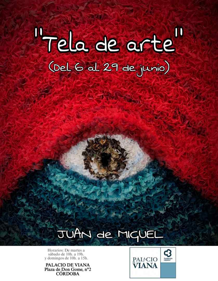 Del 6 al 29 de junio, el Palacio de Viana de Córdoba acoge la exposición “Tela de arte”, una muestra que no deja indiferente. Su autor, Juan de Miguel, artista textil nacido en Barcelona en 1964, presenta un universo lleno de color, textura y sentimiento, donde la tela cobra vida a través de una técnica ancestral reinterpretada con originalidad y sensibilidad.