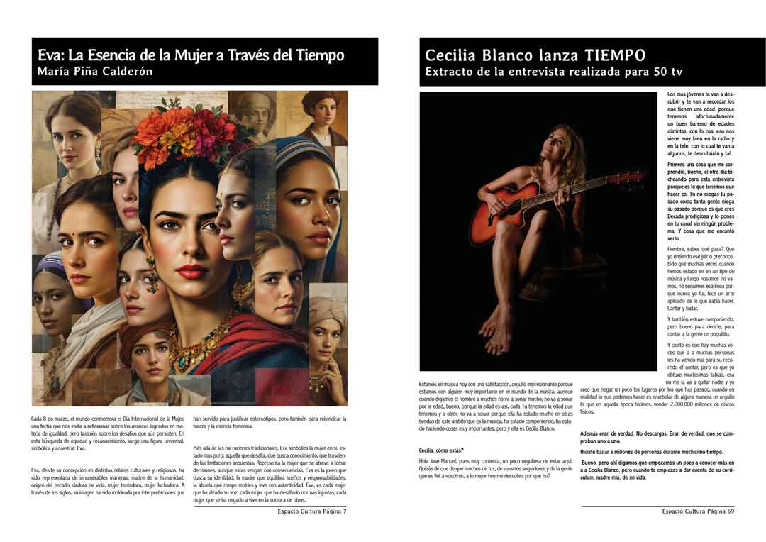 En cuanto a los personajes y temas tratados, podemos encontrar entre sus páginas a: Beatriz Arjona, flamante Premio Carmen del Cine Andaluz (portada de la misma); los artistas plásticos: Arellano, Lola López, Novais, José Domínguez, Lilia Luján, María del Mar Martínez Medina y M. Esperanza Ruiz-Olmo. En el entorno de la música, a través de entrevistas y reportajes, se encuentran las jóvenes figuras musicales Juanjo Bona o Chiara y una amplia entrevista a una de las lideres musicales del mítico grupo musical “LA DECADA PRODIGIOSA”, Cecilia Blanco, que presenta su nuevo disco, en el que se encuentra el tema “Tiempo”.