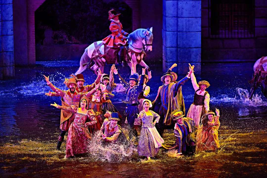 El primero de los imprescindibles es "A Pluma y Espada", un homenaje al Siglo de Oro que traslada al público al Toledo de 1600. Aquí, LOPE DE VEGA —interpretado con vigor casi shakespeariano— defiende la autoría de su obras y otros hechos, envuelto en duelos a espada, intrigas palaciegas y torneos poéticos. Cientos de actores, caballos y acróbatas dan vida a escenas que fluyen entre el drama y la comedia, mientras proyecciones sobre agua y fuego enriquecen el relato. “Es como si hubiéramos estado viviendo ese momento”, comenta un espectador tras la función. La obra no solo entretiene: educa, emociona y une generaciones con un guiño a la importancia de la literatura como bastión de la libertad.
