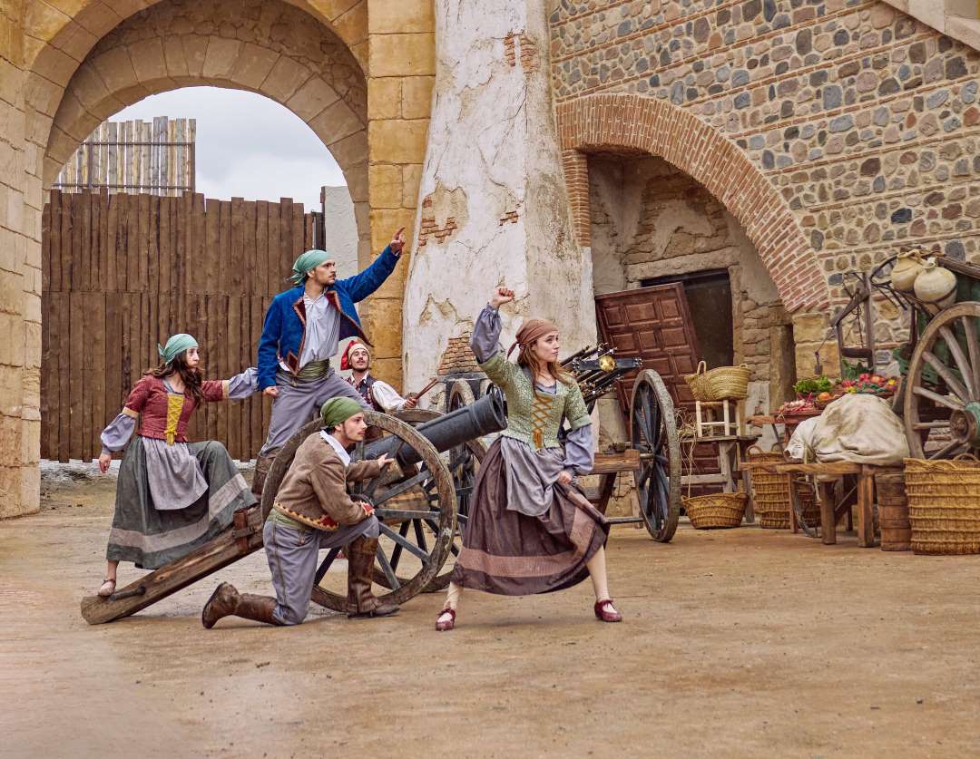 Entre las nuevas incorporaciones del parque, "El Tambor de la Libertad" se ha ganado un lugar especial. Ambientado en la Guerra de Independencia (1808-1814), el espectáculo recrea el levantamiento popular contra las tropas napoleónicas con una particularidad: los tambores. Decenas de actores marcan el compás de escenas que alternan danza, combate y teatro callejero, mientras los espectadores, situados en una plaza castellana reconstruida, vibran con la resistencia de personajes anónimos. “No es solo un show, es un himno a la dignidad”, describe una profesora de historia.
