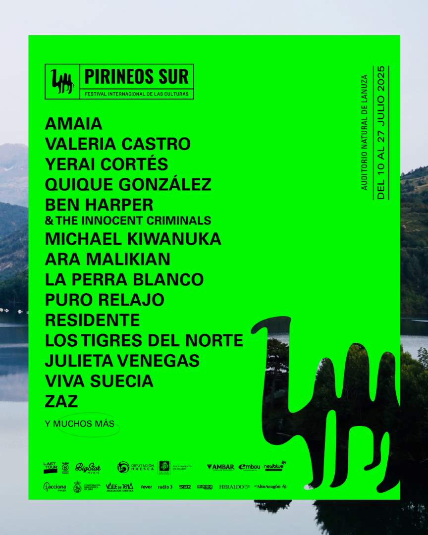 Los Tigres del Norte, Michael Kiwanuka, Zaz, Ben Harper & The Innocent Criminals, Julieta Venegas, Residente, Ara Malikian, Amaia, La Perra Blanco, Quique González, Yerai Cortés, Puro Relajo y Valeria Castro son los primeros nombres de Pirineos Sur 2025, que promete ser uno de los más potentes de las últimas ediciones. El festival más importante de Aragón desplegará entre el 10 y el 27 de julio su escenario flotante sobre las aguas de Lanuza para acoger de nuevo un ecléctico cartel en uno de los espacios naturales más sobrecogedores del país.